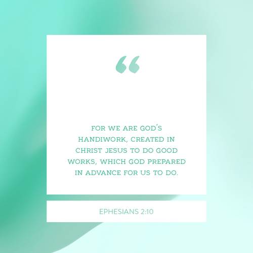 Given the chance, there are probably about half a dozen things we would change right away about ourselves. There are days we’d rather not look in the mirror because we see too many flaws, both internal and external. But in his letter to the church in Ephesus, Paul tells us we are God’s handiwork. God is at work in us, and He will never give up on working in us to bring about His purposes. Nothing in us, good or bad, is wasted. This is more than just good news, this gives us purpose—a purpose rooted in the work He wants us to do. What are the good works you believe God has prepared you to do?