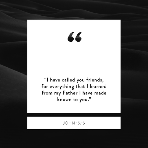 Have you ever feel far away from God? Not like He’s mad at you, but like He is absent and distant from you. If you’ve ever felt your relationship with God was like one between you and some old, distant relative, you are not alone. Most people have experienced a similar feeling. But Jesus ensures us that even when we feel this way, God does not. Instead, He views us as His friends! Think about that for a second. God wants to be your friend, and Jesus—the person who came to the Earth, lived a perfect life, died to show us how valuable he thought we were, and then rose from the dead—wants to be your friend. We don’t have to approach God like He’s some distant and ancient old guy far removed from the details and concerns of our lives. He’s a friend who is both close by and concerned with our lives. We can talk to Him believing that’s true.